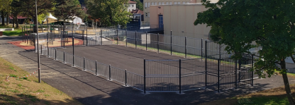 La cour existante était revêtue dans sa totalité par de l’enrobés. Elle ne permettait qu’un usage restreint des espaces bien souvent affecté à la pratique des jeux de ballons.